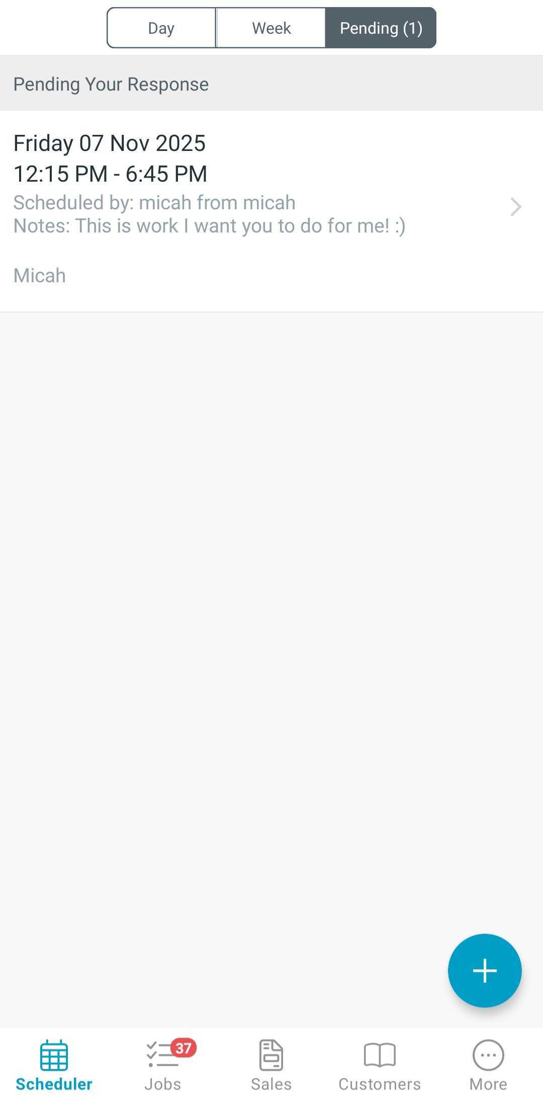 Your Connections will also receive a mobile app push notification outlining they need to respond to their appointment request, and will show in the pending tab within the Scheduler page of the mobile app (See below for reference).