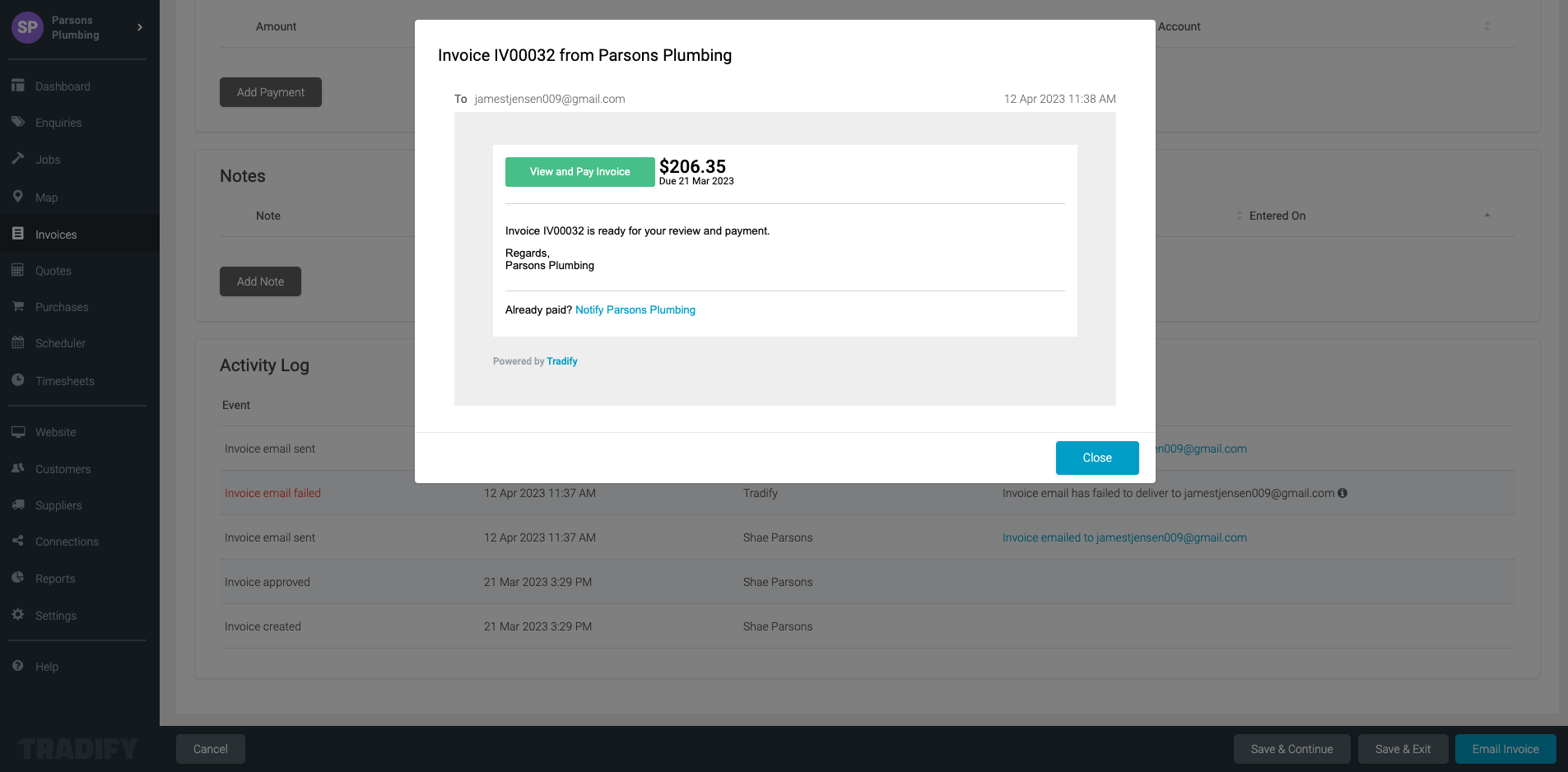 Tradify's History feature is designed to help you keep track of your customer communications in one central place.