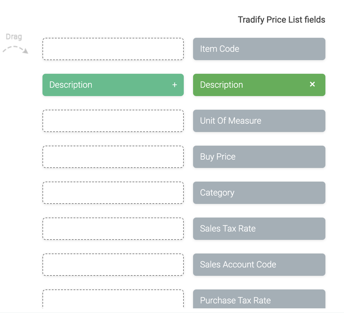 - Tradify will automatically assign the fields it detects but you can manually change them around.
